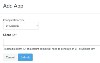 Once you receive the Client ID, go to your course page in Canvas. Navigate to “Settings” > “Apps” > ”+ App”.