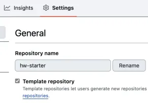 Ideally, we just want to create the assignment repo. However, the Github classroom requires that an assignment is built from a template repo. That’s why we must create hw-starter first.