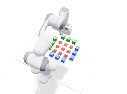 The students are given the poses of all the cubes and grid cells relative to the robot’s base frame. The green cubes represent the O and the blue cubes represent the X. They need to use inverse kinematics to find the joint positions and send the trajectory back to me via a ROS service call.